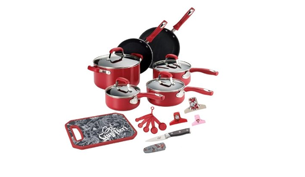Amazon Com Guy Fieri 21 Pc Nonstick Cookware Set Red Kitchen Dining