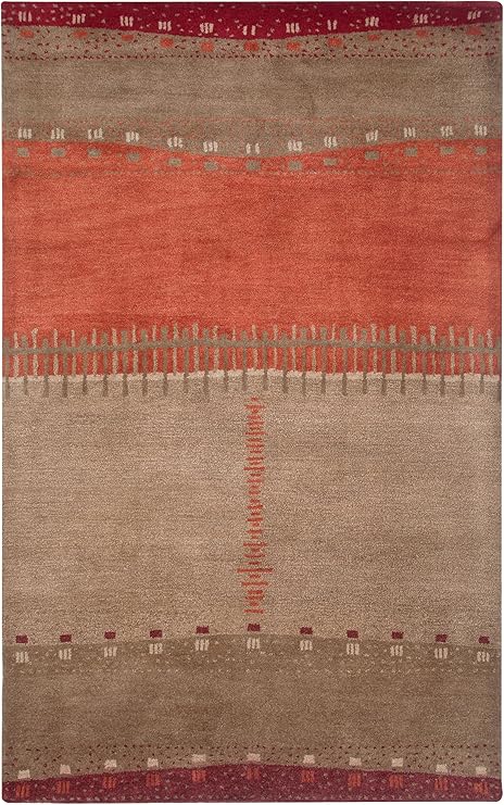 Rizzy home craft collection wool area rug 8 x 10 red gray rust blue border.