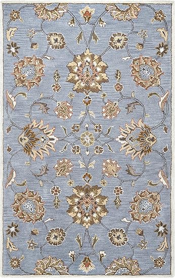 Amazon Com Rizzy Home Valintino Collection Wool Area Rug 9 X 12 Blue Brown Tan Blue Rust Lt Gray Floral Furniture Decor