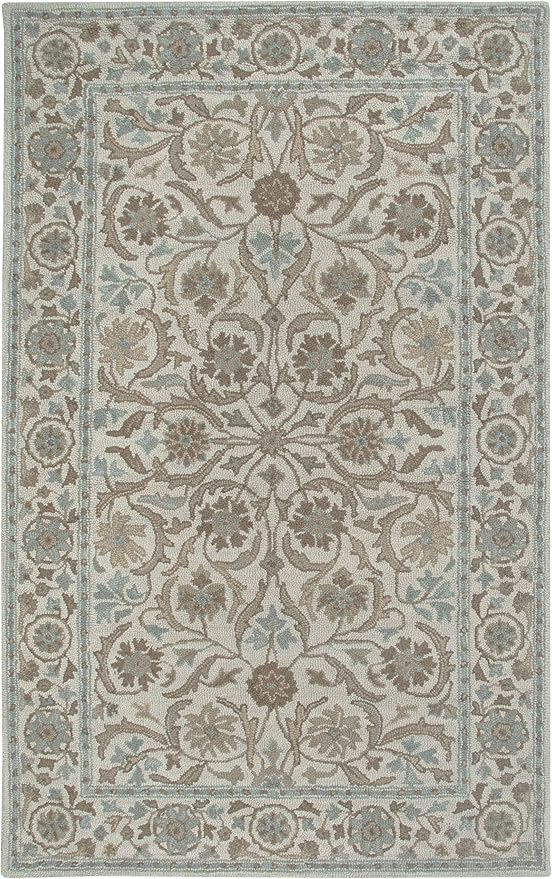 Amazon Com Rizzy Home Valintino Collection Wool Area Rug 8 X 10 Gray Tan Ivory Border Furniture Decor
