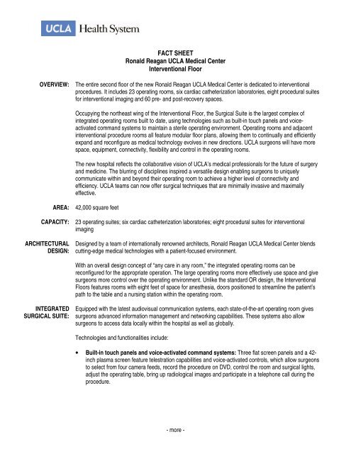 The resources below provide unit specific information unique to each floor in ronald reagan ucla medical center to help our patients and visitors know what to expect during their stay.
