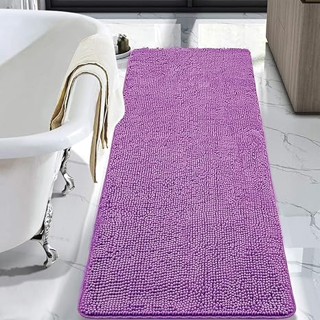 Smiry luxury chenille bath rug extra soft and absorbent shaggy bathroom mat rugs machine washable non slip plush carpet runner for tub shower and bath room 20 x32.