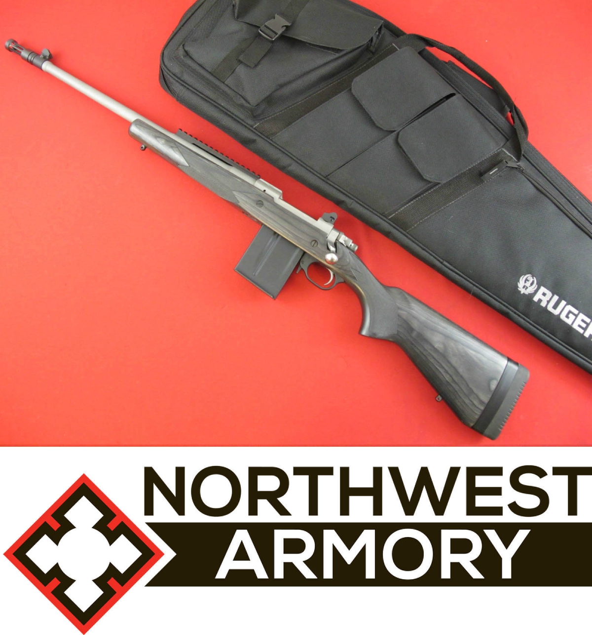 Bullseye North Ruger Gunsite Scout Left Hand Bolt Action Rifle M77 308 Winchester 18 Barrel 10 Rounds Black Laminate Stock Matte Stainless Finish 6821