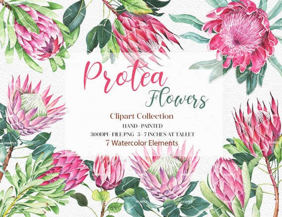 Watercolor Protea Flower Clipartprotea Flower Elementsprotea Etsy