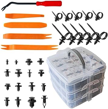 Clip plastic clips for car push type bumper fasteners rivet clips 2 sizes auto clips fastener for bumper fender clips replacement fastener removal tool included.