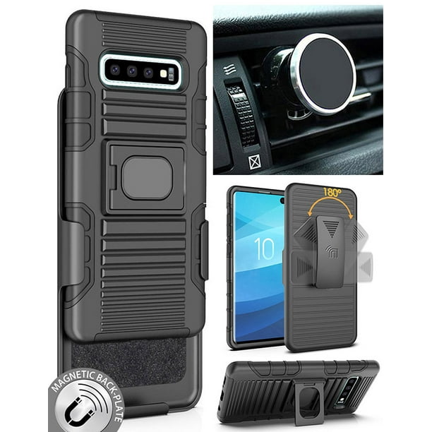 Pouch holster rugged qx black heavy duty horizontal vertical indestructible design triple armored magnetic front closure w detachable quad lock steel clip fit samsung galaxy j3 2016 j320 sky s320 sol j321 amp express prime cellphone.