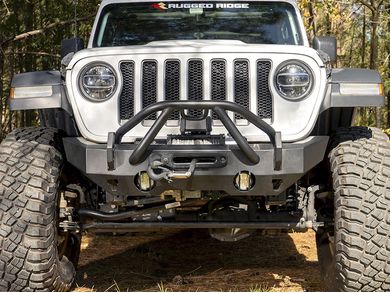 Rugged ridge front xhd aluminum winch bumper.