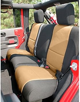 Amazon Com Rugged Ridge 13264 04 Black Tan Neoprene Rear Seat Cover Automotive