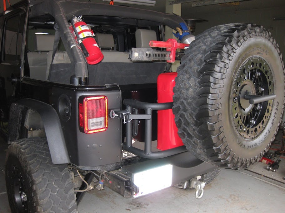Using the factory latch mechanism and a reinforced spindle jeep owners have the ability to mount up to a 37 inch tire and operate with one hand both the carrier and.