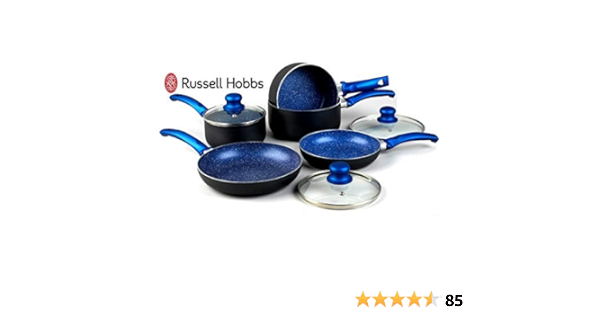 Russell Hobbs 8 Piece Induction Non Stick Stone Pan Set Saucepan Frying Pan Kitchen Cookware Blue Amazon Co Uk Kitchen Home