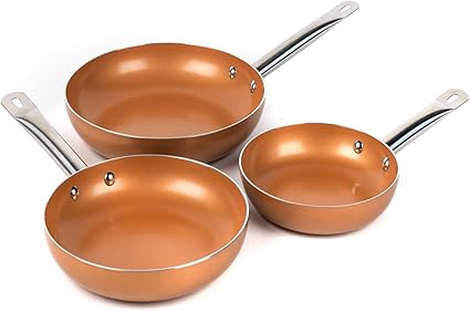 Russell Hobbs Rh00032et 3 Piece Copper Non Stick Induction Frying Set Saucepan Ceramic Pan Kitchen Cooking Cookware Metal Amazon Co Uk Kitchen Home