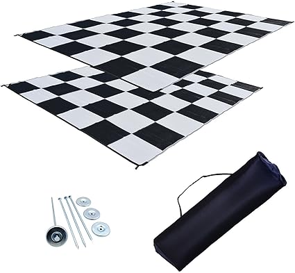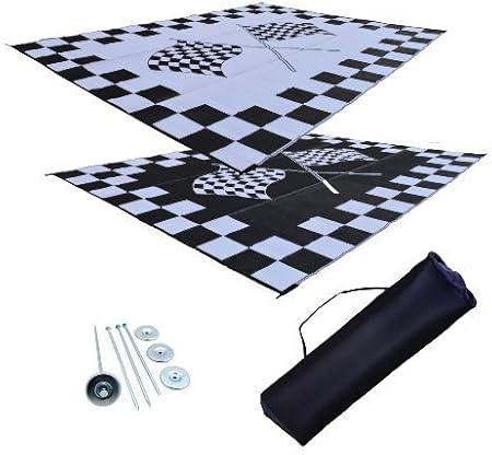 Amazon Com Ez Travel Mats Rv Patio Mat Awning Mat Outdoor Leisure Mat 9x18 Checkered Flag Complete Kit Home Kitchen