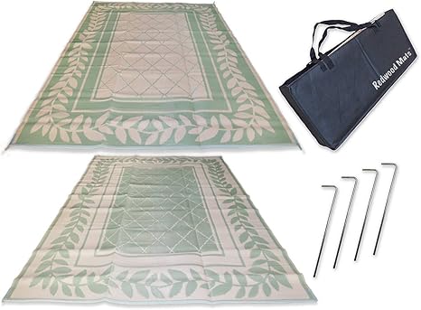 Amazon Com Redwood Mats Patio Mat 9 X 12 Leaf Green Rv Mat Reversible Outdoor Rug Camping Indoor With Ground Stakes Carry Bag Kitchen Dining