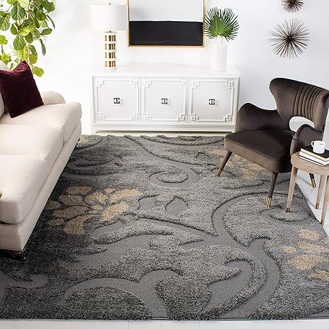 Amazon Com Safavieh Florida Shag Collection Sg464 8013 Floral Textured 1 18 Inch Thick Area Rug 8 X 10 Grey Beige Furniture Decor