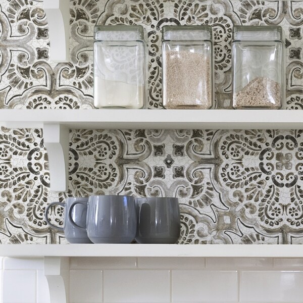Galt Black Florentine Tile Peel Stick Wallpaper Overstock 30979325