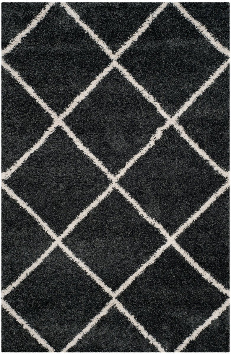 From safavieh s hudson shag collection sgh281g displays white diamond motifs on a plush dark grey pile for a classic contemporary styled floor covering.