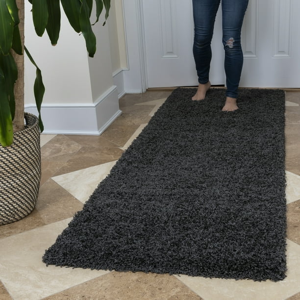 Ottomanson Ultimate Shaggy Contemporary Solid Runner Rug Dark Gray 2 X5 Walmart Com Walmart Com