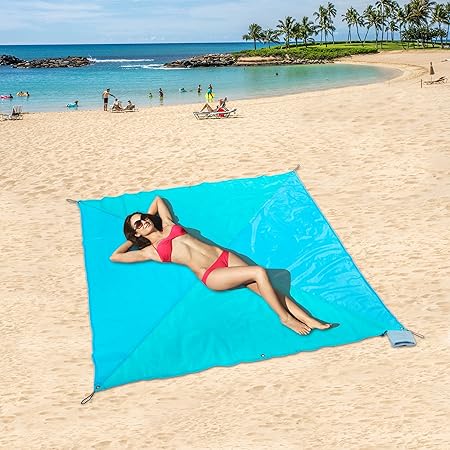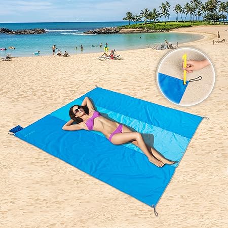 Beach picnic blanket tklake extra large 210 x 200cm 78 7 82 7in waterproof sandproof quick drying beach mat with portable case bag and 4 fixed nails for beach camping hiking and grass trips blue 4 1 out of 5 stars 235.