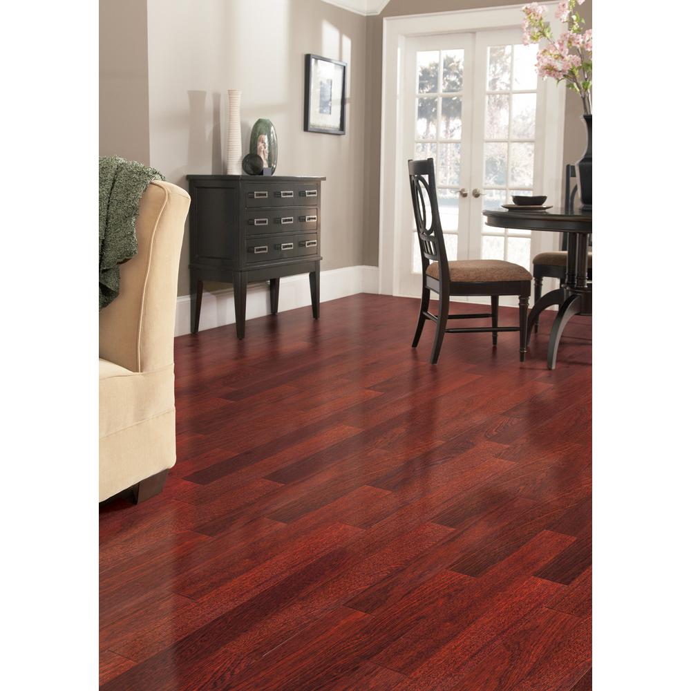Bellawood 1 2 x 5 1 8 select santos mahogany prefinished engineered flooring 100 year warranty.