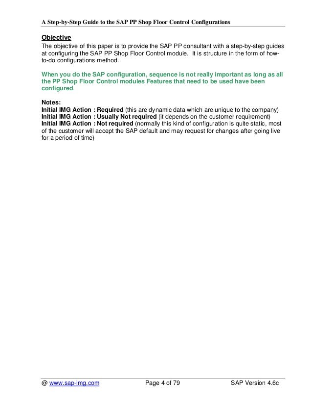 The objective of this paper is to provide the sap pp consultant with a step by step guides at configuring the sap pp shop floor control module.