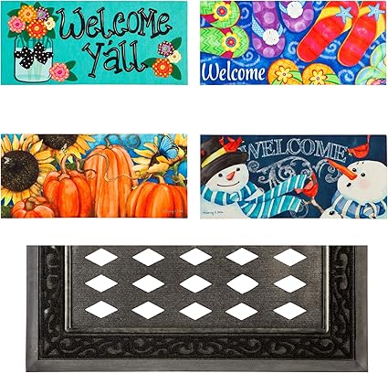 Evergreen flag mat set of 5 interchangeable sassafras mat inserts and mat tray for winter spring summer fall.