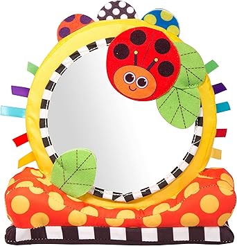 Sassy crib and floor mirror inspires baby s vision touch exploration and communication and manipulation skills with high contrast colors character faces and simple patterns and realistic forms includes high contrast tracker ball for visual stimulation and perception textures and fun characters of lady bug and butterfly keep baby s attention.