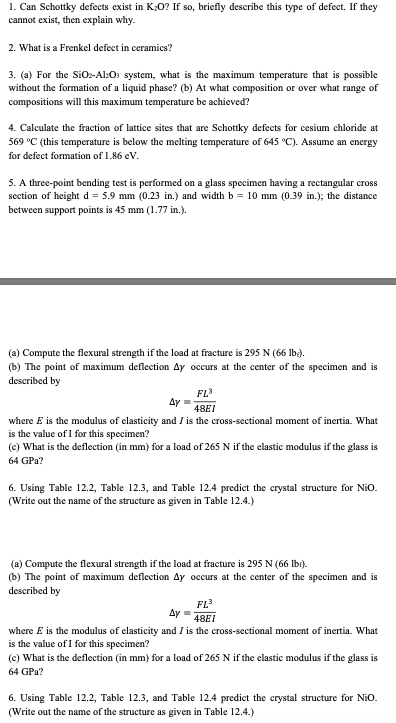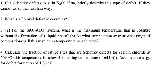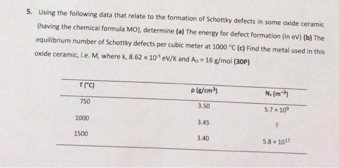Using The Data Given Below That Relate To The Formation Of Schottky Defects In Some Oxide Ceramic Having The Chemical Formula Mo Determine The Energy For Defect Formation In Ev And The