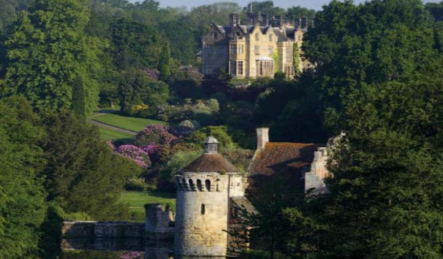 The garden wider estate cafe for takeaway and toilets are open at scotney castle.